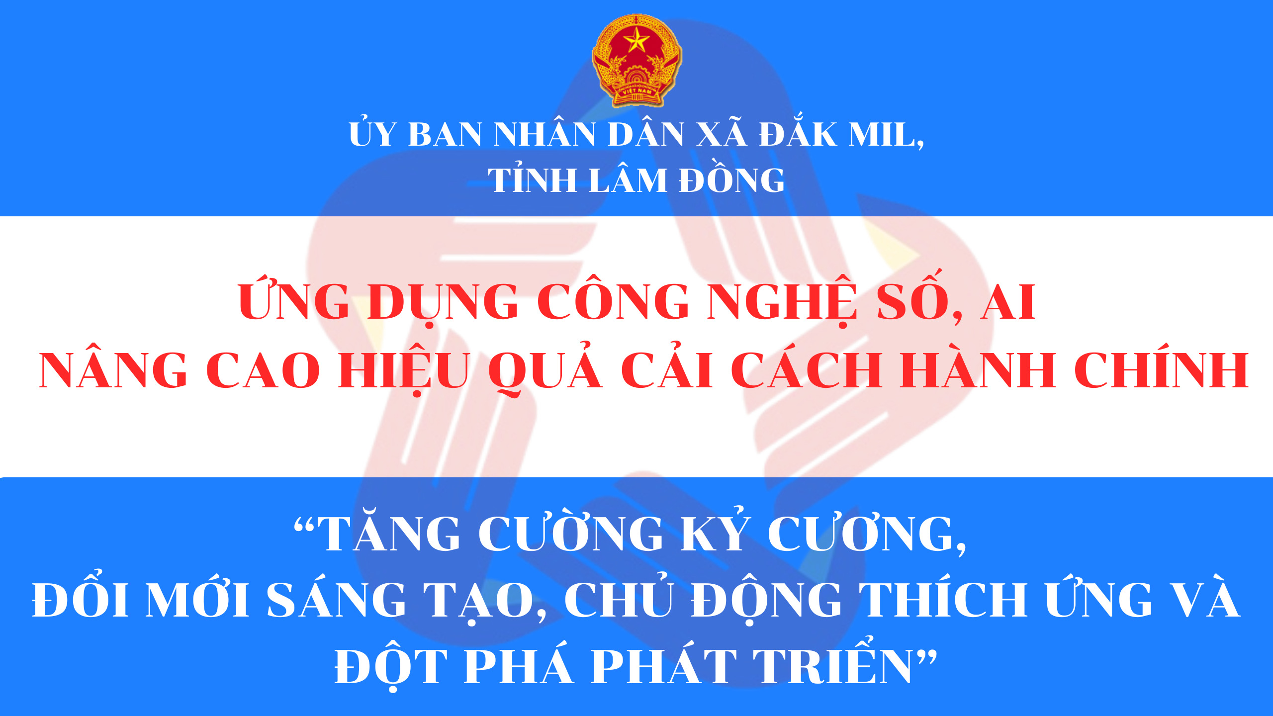 Cải cách hành chính Dịch vụ công trực tuyến Danh mục TTHC có Mã Qr-Code Tin tức Cải cách hành chính UBND xã Đắk Mil ban hành Kế hoạch chuyển đổi số năm 2026  16:22 24/02/2026 |   49 Ủy ban nhân dân xã Đắk Mil đưa vào vận hành hệ thống lấy số thứ tự tự động tại trung tâm phục vụ hành chính công xã  09:17 24/02/2026 |   18 Kết quả khảo sát mức độ hài lòng của người dân đối với sự phục vụ của cơ quan hành chính nhà nước năm 2025 và tiếp tục triển khai khảo sát trong năm 2026  08:15 24/02/2026 |   42 Đắk Mil: Báo cáo thực trạng và đề xuất giải pháp nâng cao chất lượng soạn thảo văn bản quy phạm pháp luật  08:06 01/02/2026 |   13