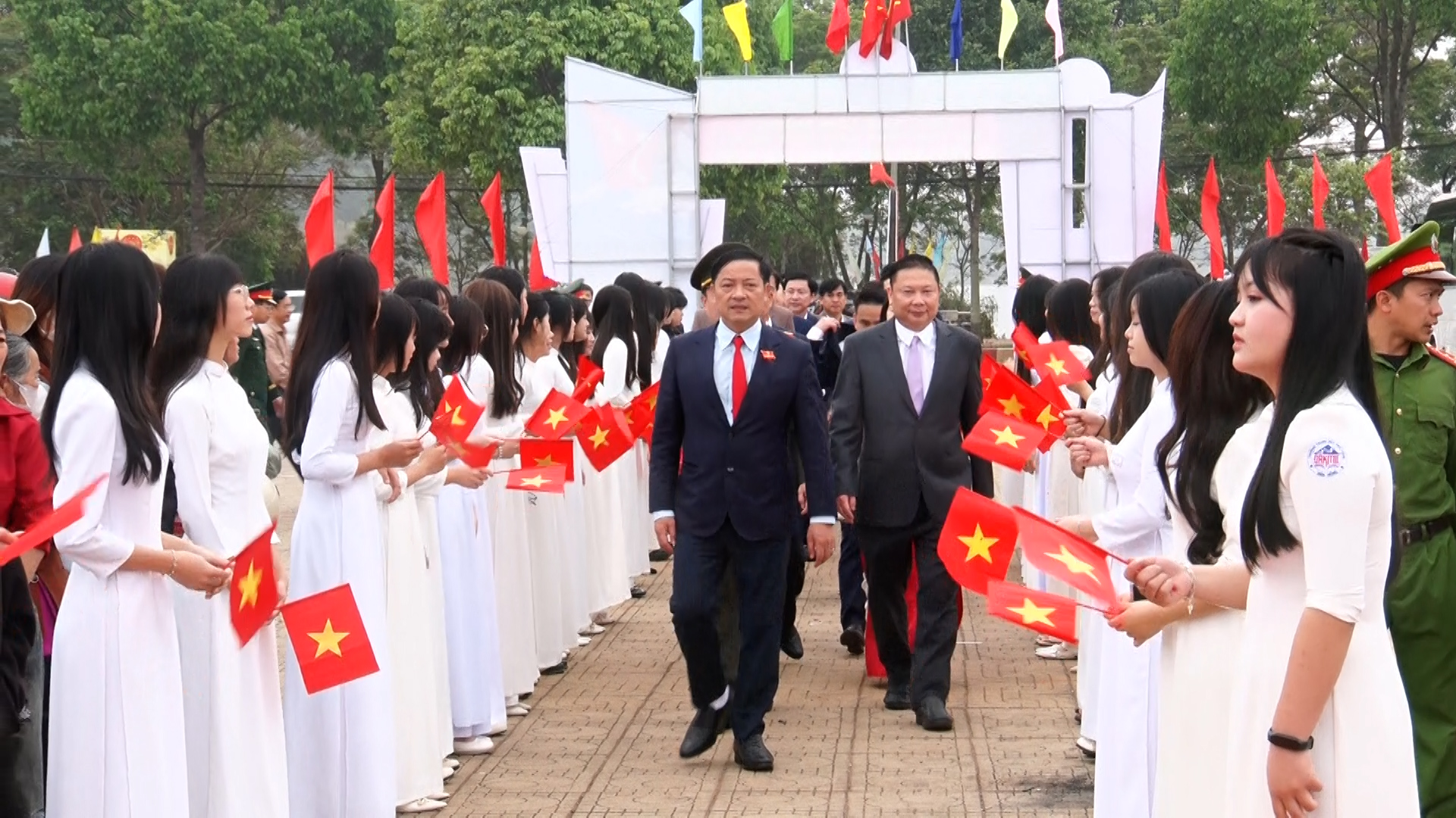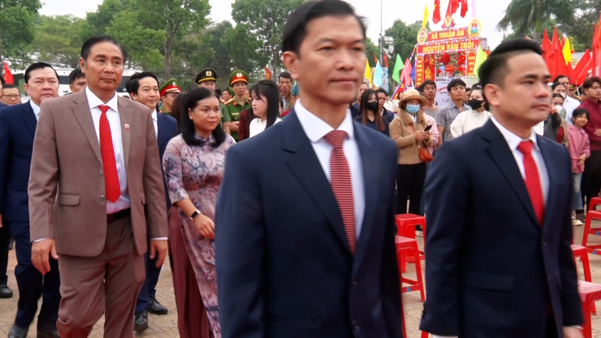 Về phía địa phương có đồng chí Trương Văn Bình, Bí thư Đảng ủy, Chủ tịch HĐND xã; đồng chí Nguyễn Quốc Dũng, Phó Bí thư Đảng ủy, Chủ tịch UBND xã; cùng lãnh đạo Công an xã, Ban Chỉ huy Quân sự xã và đông đảo Nhân dân, người thân các thanh niên.