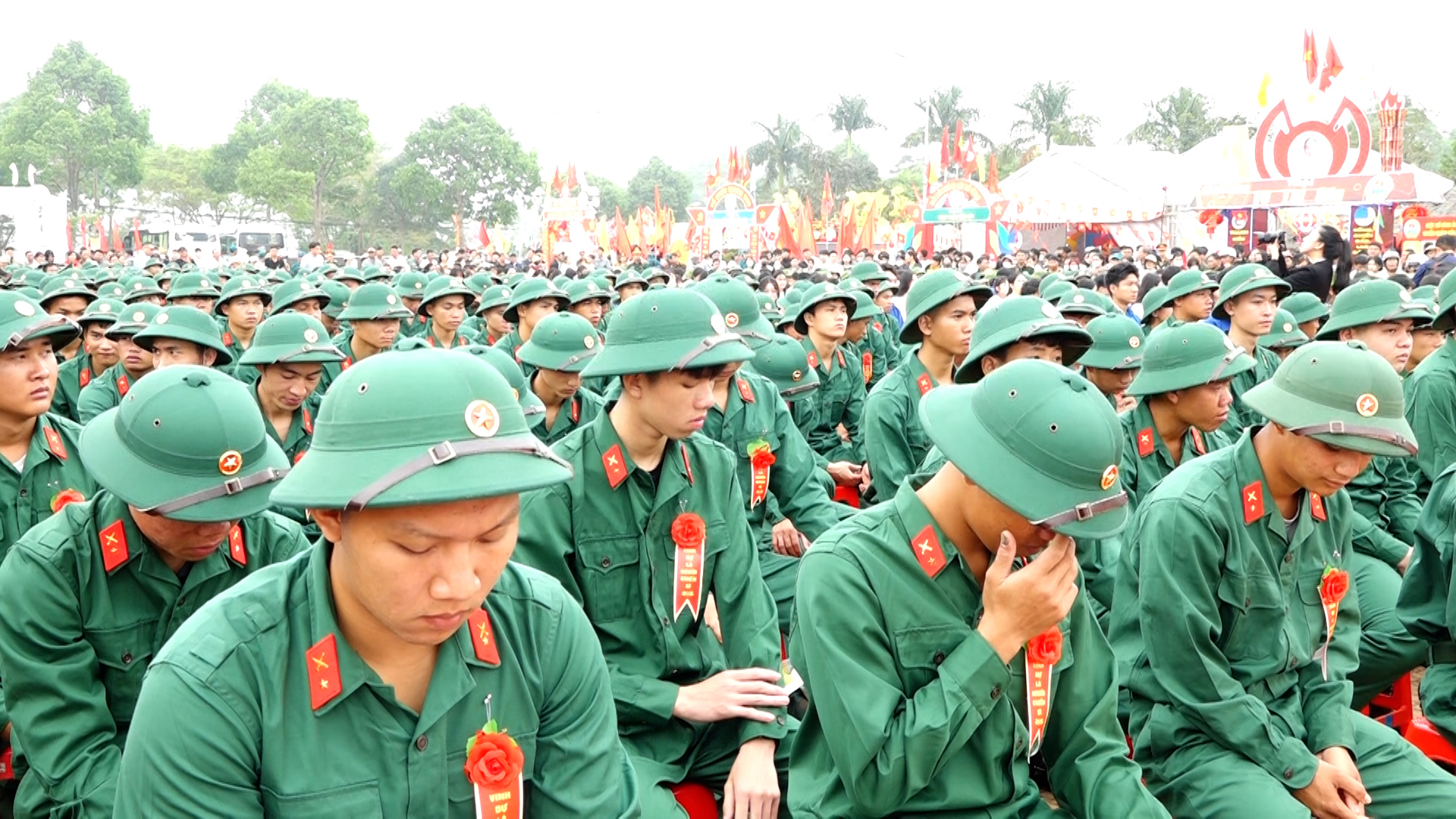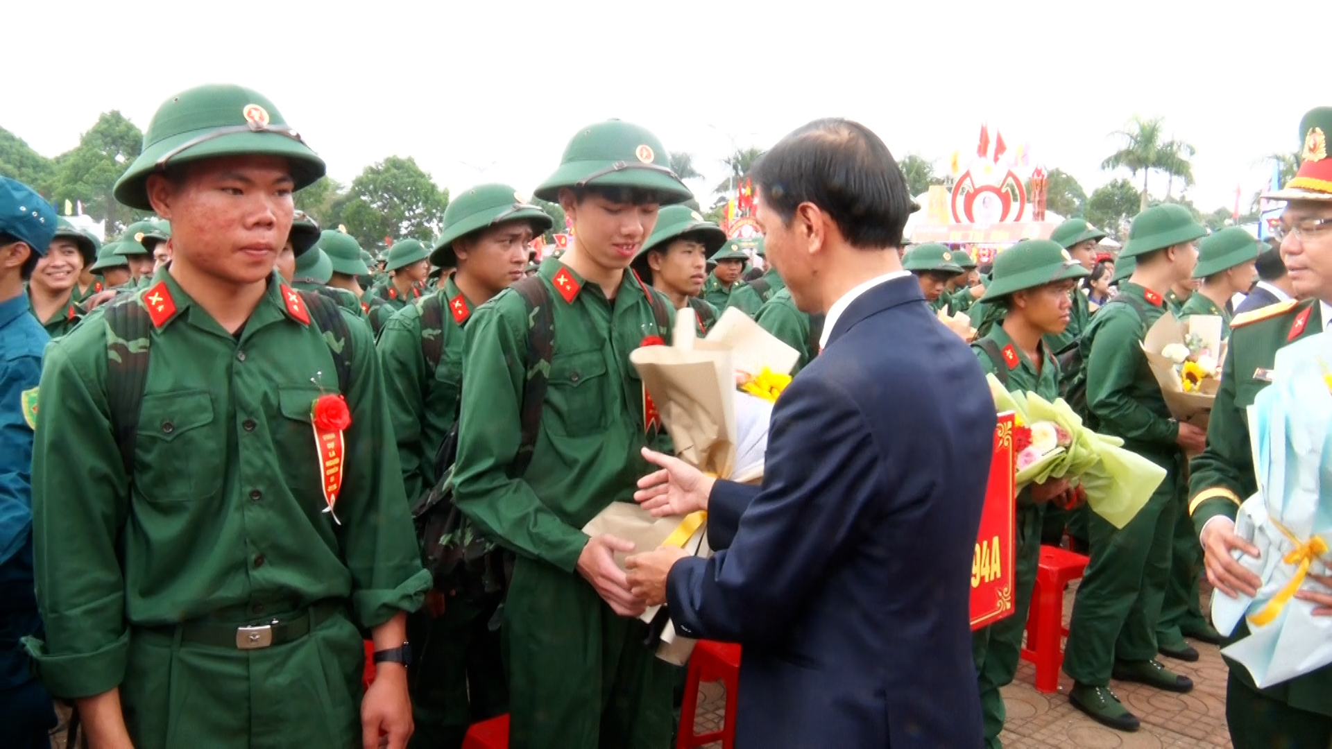 Tại buổi lễ, nghi thức đánh trống mở hội giao quân được thực hiện trang trọng, tạo khí thế sôi nổi, cổ vũ tinh thần các tân binh trước giờ lên đường. Ngọn lửa truyền thống được thắp sáng, biểu trưng cho niềm tin và ý chí quyết tâm của thế hệ trẻ trong sự nghiệp xây dựng và bảo vệ Tổ quốc. Lãnh đạo tỉnh và địa phương đã trực tiếp tặng hoa, động viên các tân binh, gửi gắm niềm tin các đồng chí sẽ tiếp tục phát huy truyền thống quê hương, nỗ lực học tập, rèn luyện, hoàn thành xuất sắc nhiệm vụ được giao