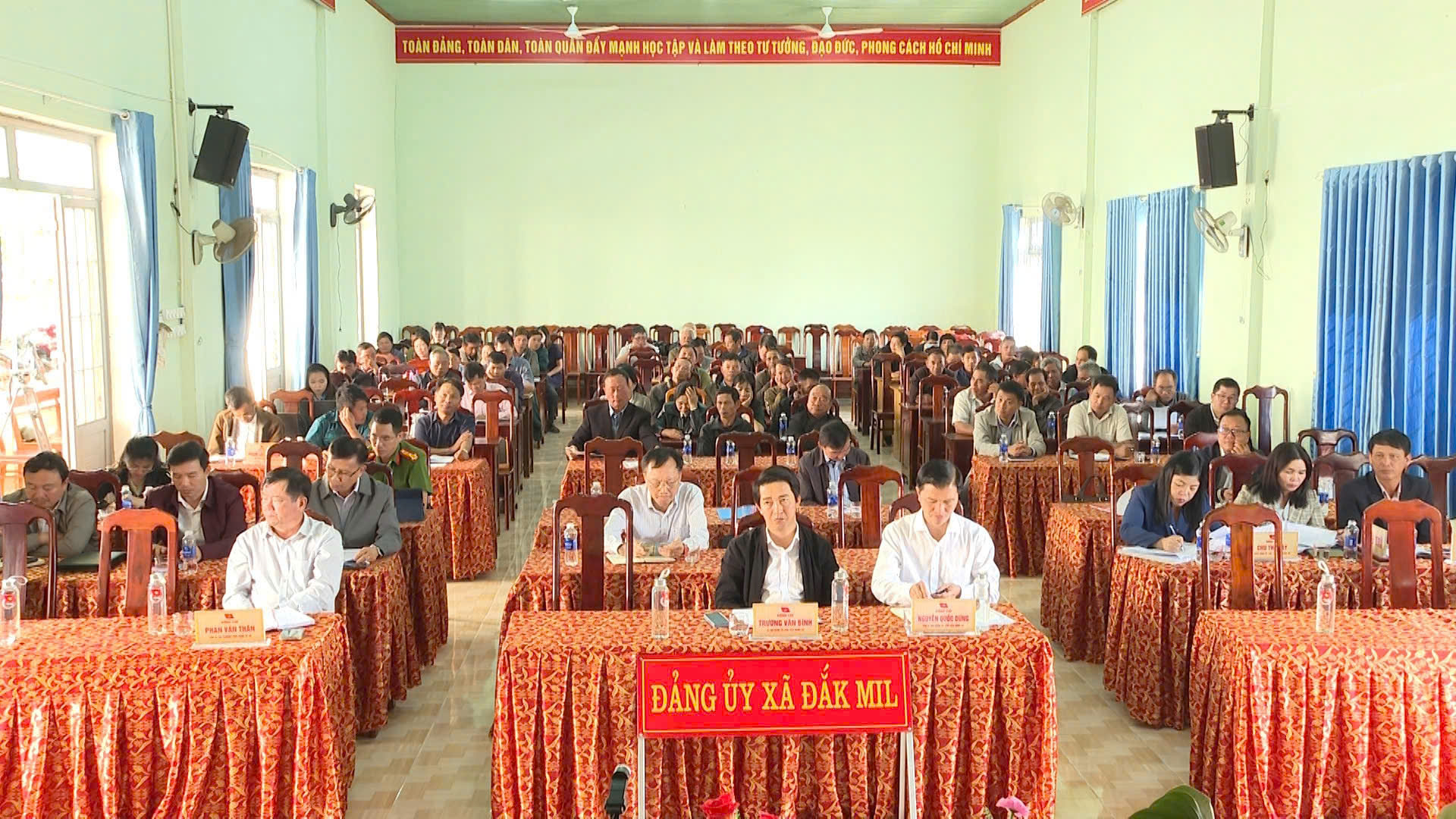 Quang cảnh Hội nghị tiếp xúc cử tri của Đoàn ĐBQH tỉnh với cử tri xã Đắk Mil