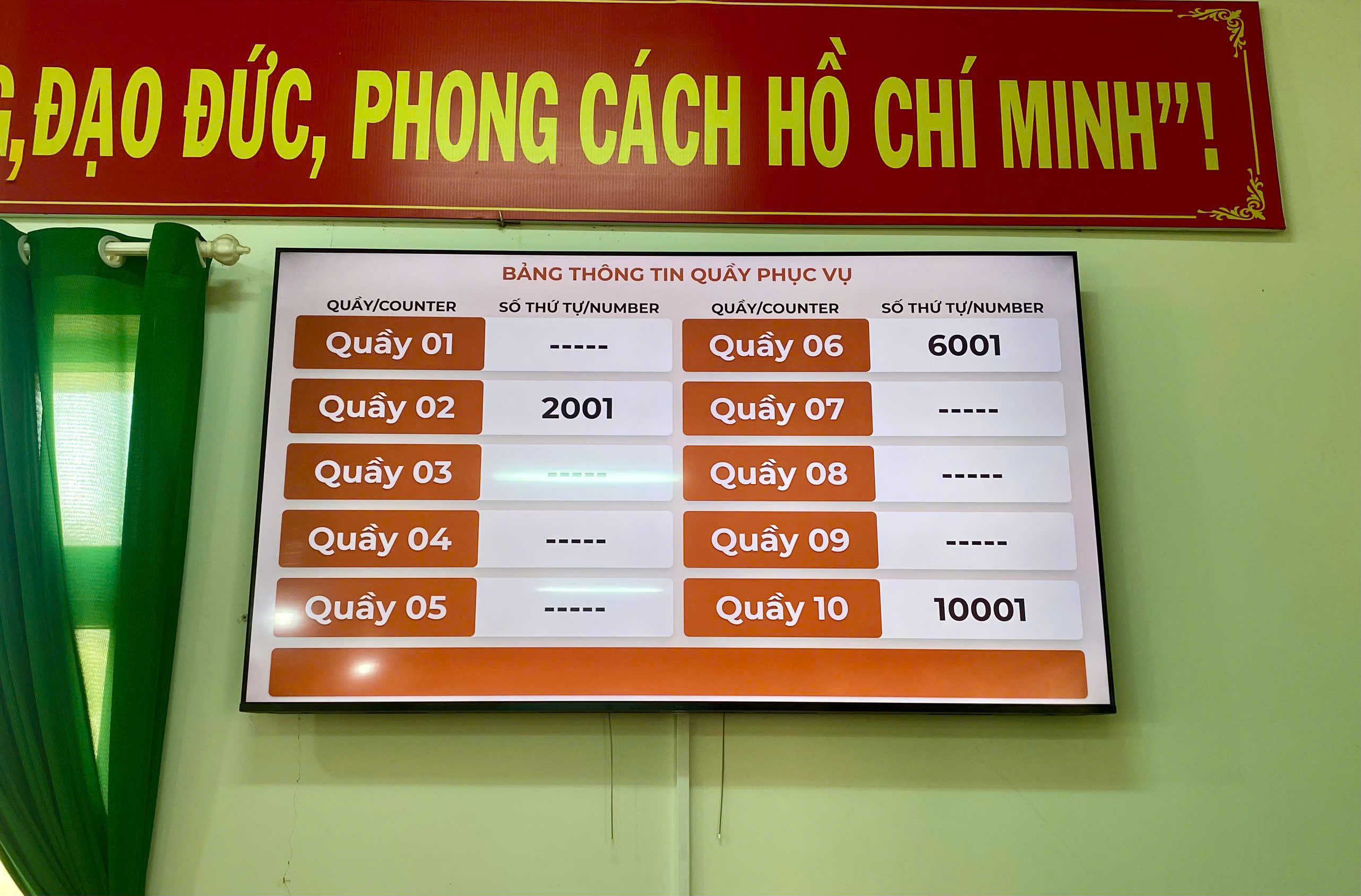 Bảng thông tin số thứ tự quầy phục vụ
