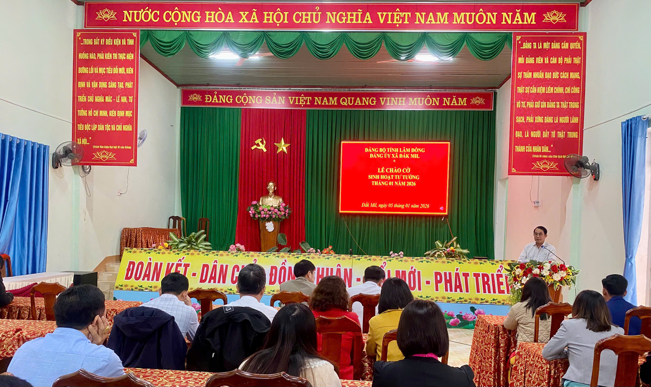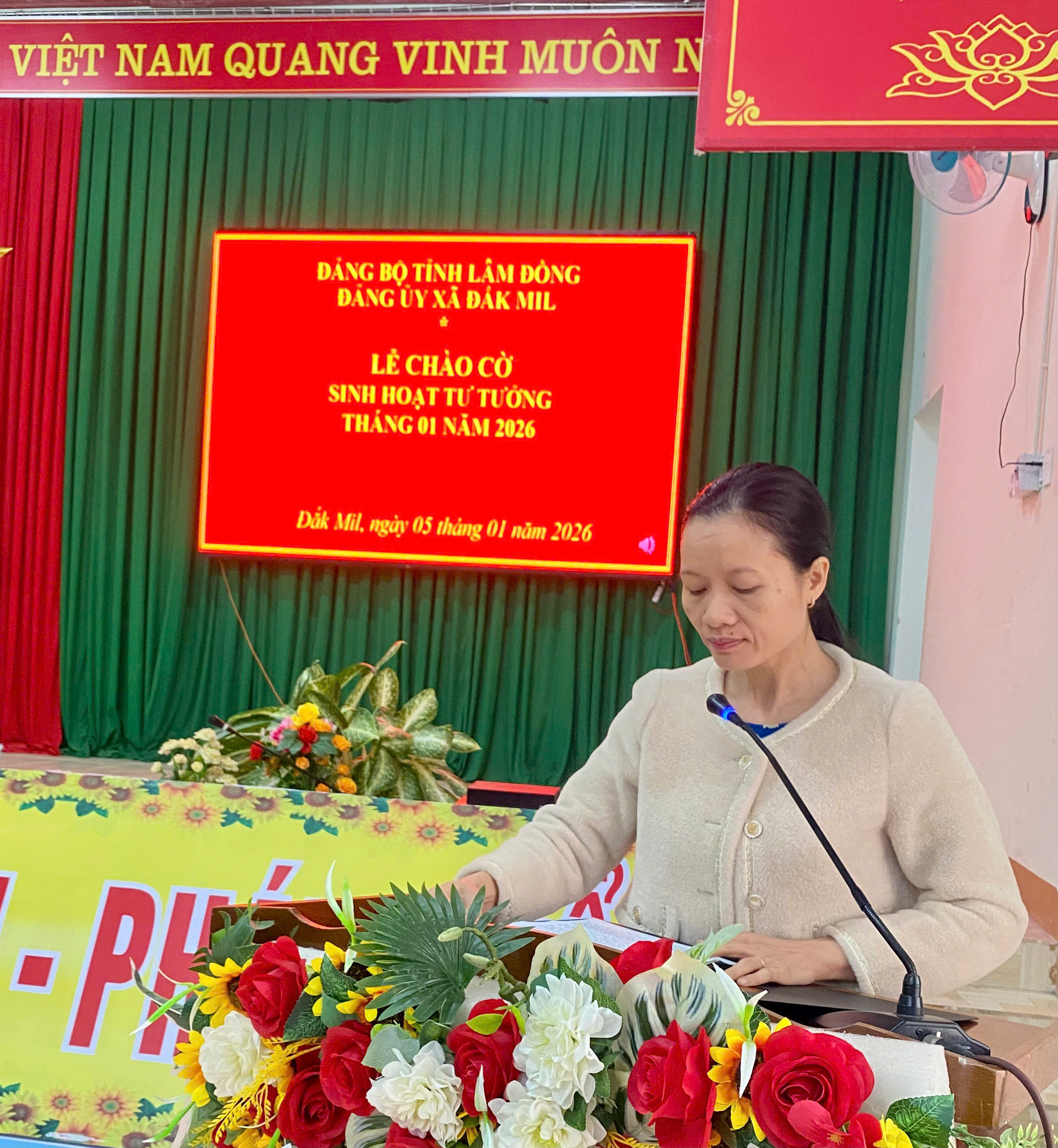 Sau nghi thức chào cờ, hát Quốc ca, UBND xã Đắk Mil tổ chức sinh hoạt chính trị dưới cờ với chủ đề: “Kỷ niệm 80 năm Ngày Tổng tuyển cử đầu tiên của Quốc hội Việt Nam (06/01/1946 – 06/01/2026)”. Thông qua sinh hoạt chuyên đề, cán bộ, công chức, viên chức xã được ôn lại ý nghĩa lịch sử của cuộc Tổng tuyển cử đầu tiên, qua đó khẳng định vai trò, vị trí của Quốc hội trong sự nghiệp xây dựng và bảo vệ Tổ quốc.